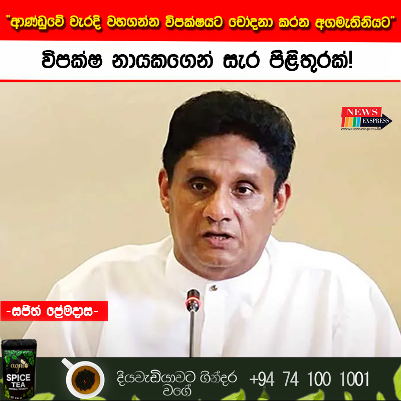 එසේම මේ ගැන හෙළිදරව් වූ පසු භාණ්ඩාගාර ලේකම් එක් කතාවක් ද නියෝජ්ය මුදල් ඇමති තවත් කතාවක් කියන විට අගමැතිවරිය ඊට හාත්පසින්ම වෙනස් කතාවක් කියමින් යන බවයි විපක්ෂ නායක සජිත් ප්රේමදාස පැවසුවේ.