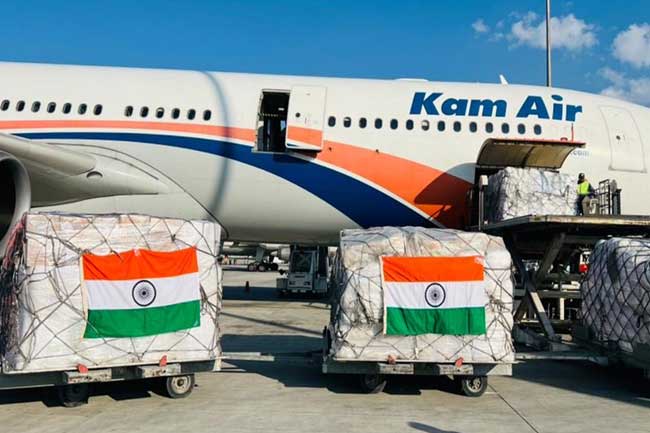 ඉන්දීය විදේශ කටයුතු අමාත්යාංශය සඳහන් කළ පරිදි, මෙම ආධාර තොගයට ටොන් 2.5ක හදිසි ඖෂධ, වෛද්ය උපකරණ සහ අනෙකුත් අත්යවශ්ය ද්රව්ය ඇතුළත් වෙයි.