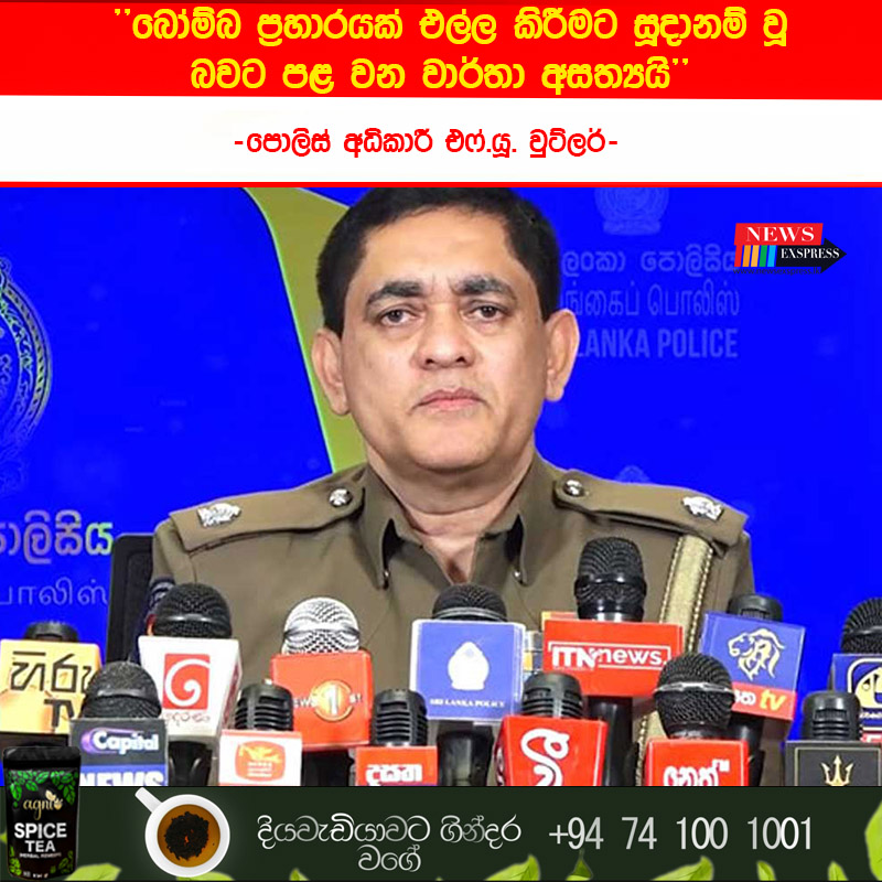 කොළඹ ඇතුළු ජනාකීර්ණ ප්රදේශවල බෝම්බ ප්රහාර මාලාවක් එල්ල කිරීමට පුද්ගලයෙකු සූදානම් වූ බවට සමාජ මාධ්ය සහ ඇතැම් වෙබ් අඩවිවල පළ වන වාර්තා සම්පූර්ණයෙන්ම අසත්ය බව පොලිස් මාධ්ය ප්රකාශක සහකාර පොලිස් අධිකාරී එෆ්.යූ. වුට්ලර් පවසනවා.