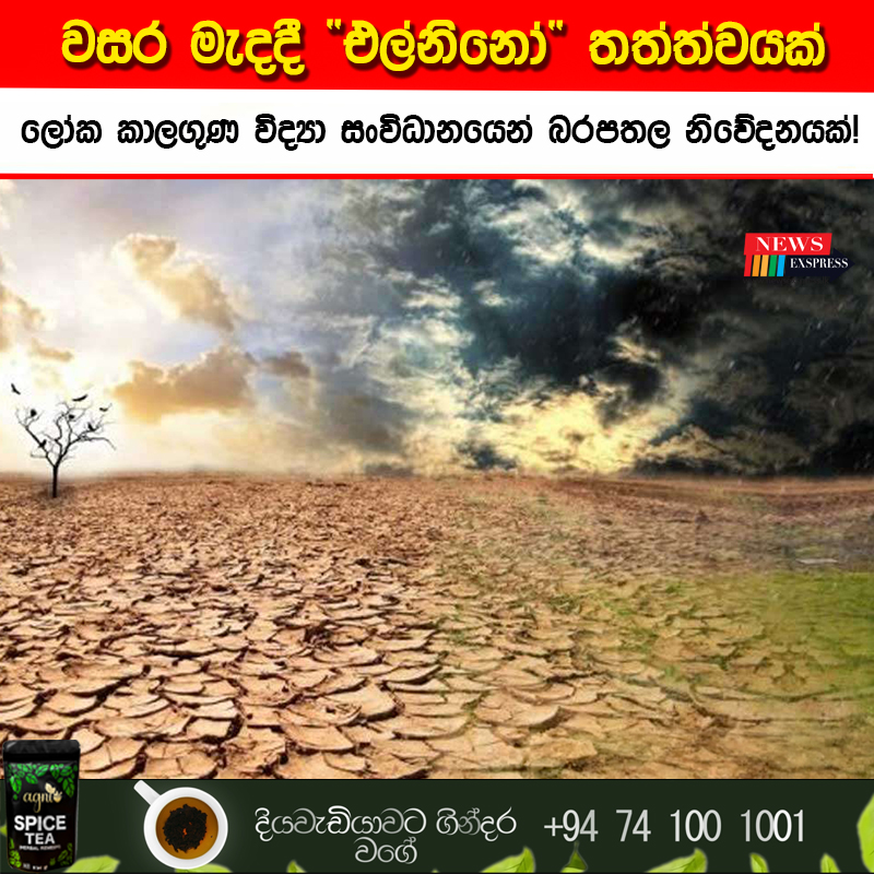 මෙම වසරේ මැද භාගයේ සිට එල්නිනෝ තත්ත්වයක් වර්ධනය වනු ඇතැයි අපේක්ෂා කෙරෙනවා.