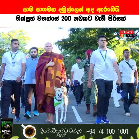 මෙම සාම පා ගමන සඳහා “ආලෝකා” නැමැති සුනඛයාද භික්ෂූන් වහන්සේ සමග එක්ව සිටී.